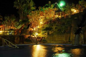 Best Adventure Park Deal in Arenal – Los Cañones Adventure Park – A great value and a great experience are yours when you play at Los Canones & Los Lagos Resort! Los Lagos Resort is one of the oldest and most authentic hot springs resorts in Arenal. With all that land, lakes, and mountainous terrain, it was just begging to be developed into so much more. You really cannot go wrong when surrounded by majestic volcanoes and soothing hot springs, but with the backdrop of the Arenal Volcano the Los Cañones Canopy tour is an experience you’ll talk about for years to come. With 1.7 miles of cables varying in length from 50 to 500 meters, this is the longest canopy tour anywhere in the area. But Los Cañones is so much more than just a canopy tour! Hot springs, a frog farm, crocodiles, butterfly garden, hiking, and horseback riding are some of the other adventures that await you here. And thanks to very reasonable room rates, a world class spa, two unique restaurants and a swim up bar nestled right into a hot spring, you may never want to leave! With great rates, exceptional service and amenities, Los Cañones Adventure Park gets our vote for the best deal in Arenal.