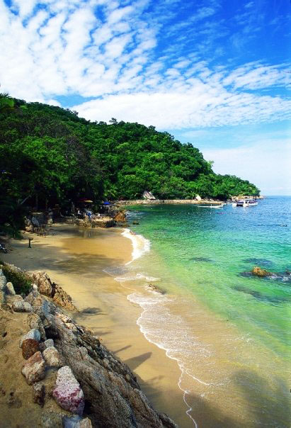Distance From Marina Vallarta: 20 to 30 minutes by panga or fast boat, about 45 minutes on the scenic route along the coastline on the larger catamarans and sailboats.