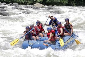 Si esta es su primera vez haciendo rafting, esta operación es de primera categoría respecto a la seguridad. También tienen el mayor número de personas en kayaks explorando los rápidos y brindando apoyo. La primera hora de rápidos son para que usted pueda afinar sus habilidades y se sienta cómodo con su equipo de rafting. Este es el momento de disfrutar todo el paisaje y la vida silvestre al máximo ¡antes de comenzar los rápidos súper salvajes! Le prometemos que la experiencia de los rápidos de clase IV le encantará, mientras desciende por la desembocadura del río Pacuare. Todo el trabajo remando vale la pena, cuando se encuentra con una ducha natural a 150 pies de alto en la Cascada Huacas. A mitad del camino puede descansar y tomar un almuerzo fresco para recargar energías para la próxima aventura, ¡más rápidos!